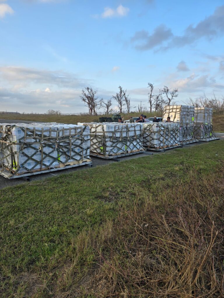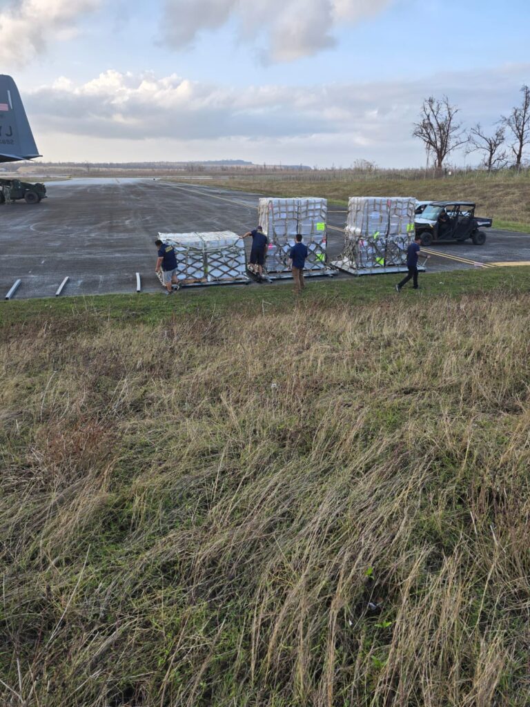 FEMA arrived on Monday, April 20, 2026, with relief supplies for Tinian — including 12 pallets of bottled water and 8 pallets of MREs.