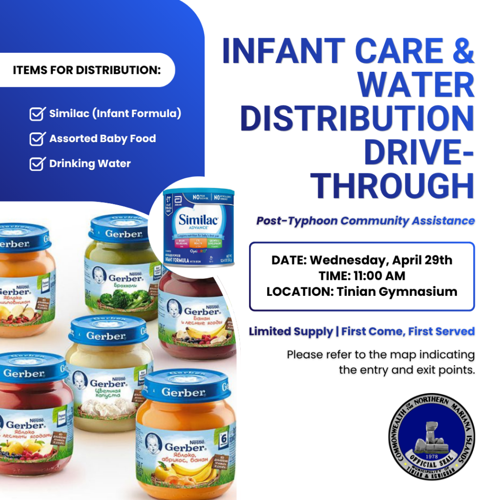 The Tinian Mayor’s Office announces an Infant Care & Water Distribution Drive-Through to support our community.