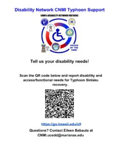 Individuals with disabilities and those with access and functional needs impacted by Typhoon Sinlaku in CNMI can report disability related immediate and unmet needs directly
