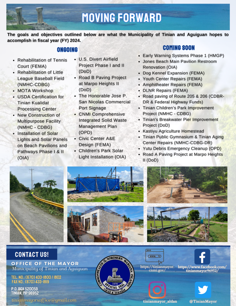 © Copyright 2023 This is the Official Website for Office of the Mayor, Municipality of Tinian and Aguiguan, Commonwealth of the Northern Mariana Islands. All rights reserved.
