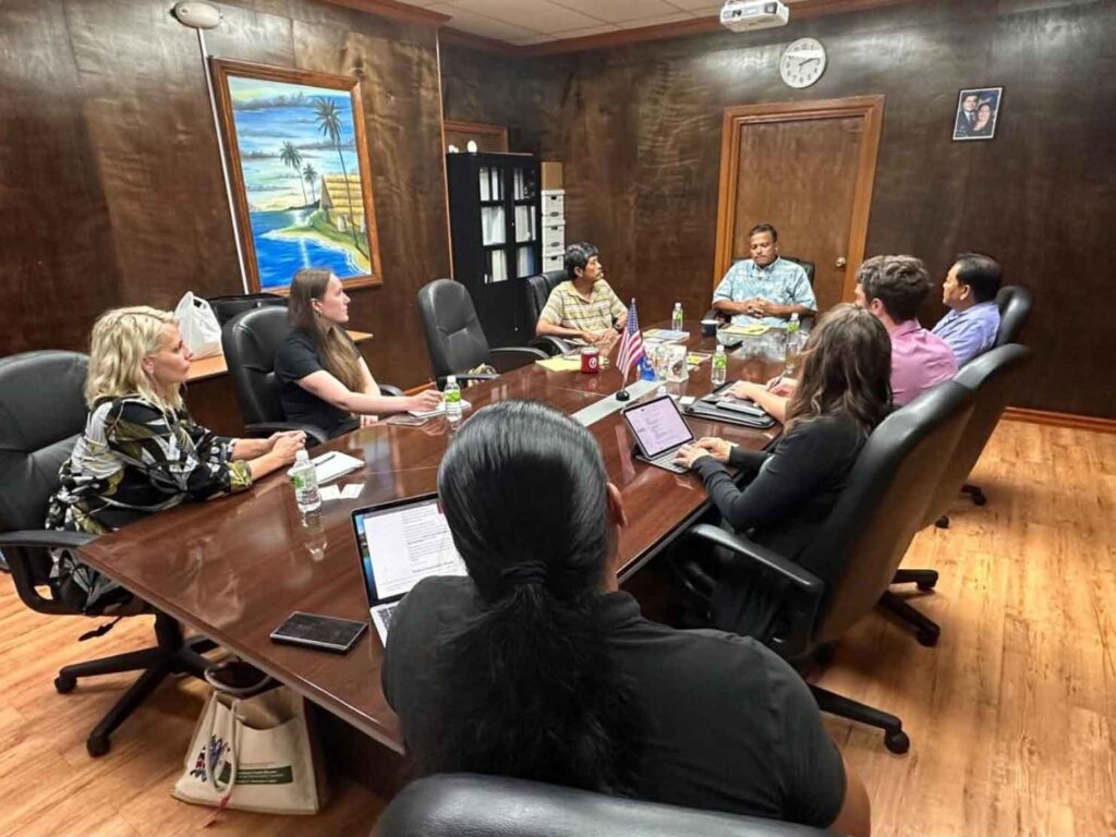 Jose Dela Cruz, president of the Tinian Cattlemen’s Association, along with Tinian senators Jude U. Hofschneider (R-Tinian) and Francisco Q. Cruz (R-Tinian), explored with Tinian SBDC director Benjamin “Huk” Borja and CNMI SBDC network director Nadine C. Deleon Guerrero the feasibility of the Tinian Cattlemen’s Association creating a cooperative for all Tinian ranchers and farmers.